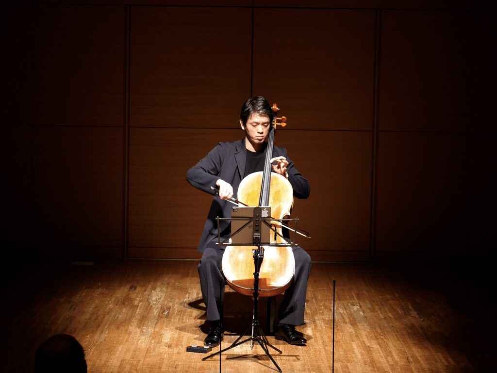 そしてその構想に、演奏者・鈴木皓矢さんが見事に応えてくださいました。バルセロナに学び、カタルーニャの文化的背景を肌で知る鈴木さんのチェロは、作品を「解説する」のではなく、音そのものの説得力で語り、各作品の距離感や輪郭を自然に立ち上げていくようでした。