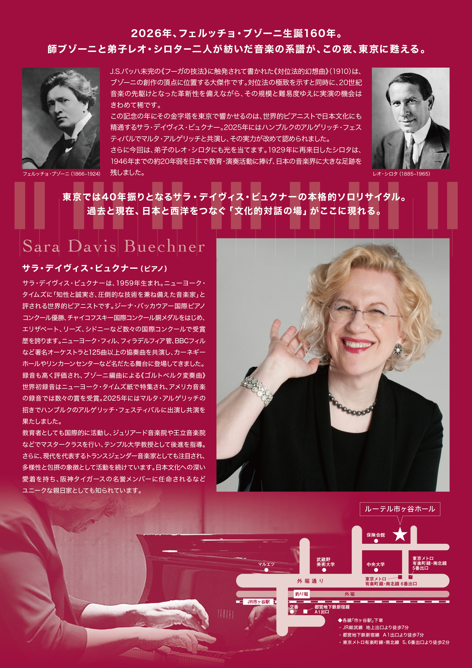 サラ・デイヴィス・ビュクナー ピアノリサイタル《フェルッチョ・ブゾーニとその弟子レオ・シロタへのオマージュ》